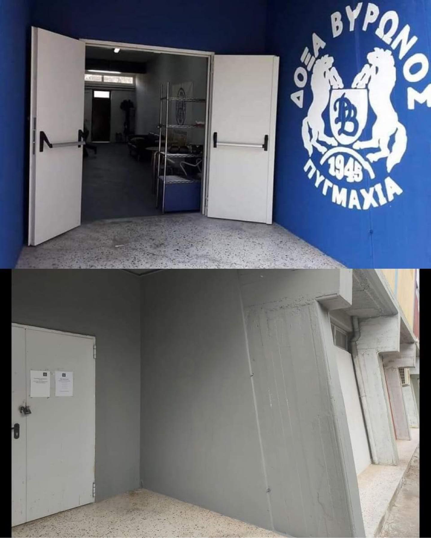 Την ίδια ώρα που ο Δήμος Βύρωνα λέει ότι στηρίζει τη τέχνη του δρόμου (street art/graffiti) πληρώνοντας ιδιώτες καλλιτέχνες για να διακοσμήσουν κοινόχρηστους χώρους, δεν ανέχεται αντίστοιχες δράσεις από συλλογικότητες όπως είναι η Δόξα Βυρωνος. Σήμερα λοιπόν, υλοποίησε την απόφαση του να εξαφανίσει από το Δημοτικό Στάδιο της Πόλης μας, όλες τις τοιχογραφίες και τα σήματα της ομάδας μας, τα οποία κοσμούσαν τους εξωτερικούς χώρους του γηπέδου. Τα εμβλήματα των άλλων ομάδων, βέβαια, δεν τα πείραξαν καθόλου. Το γιατί επιλέχθηκε η Δόξα Βύρωνος να δεχθεί την επίθεση του τοπικού κράτους, ο κόσμος της Δόξας το αντιλαμβάνεται πολύ καλά.